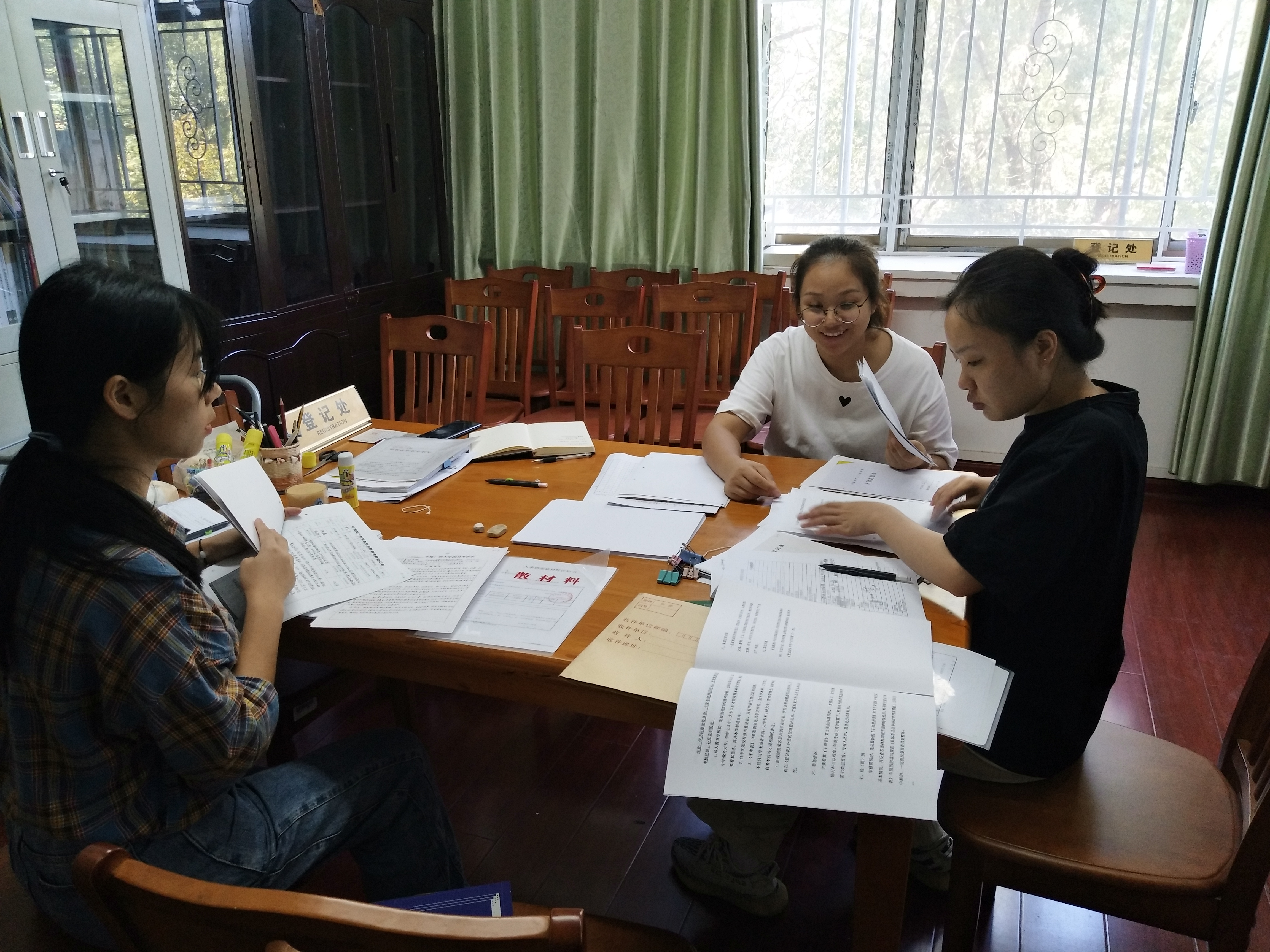 人事档案管理员贾丽君耐心指导同学们学习人事档案的分类和著录方法。