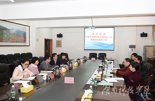 3月31日下午,永州市档案局局长蒋刚生一行来校调研档案工作,校长曾宝成热情接待了蒋刚生一行。