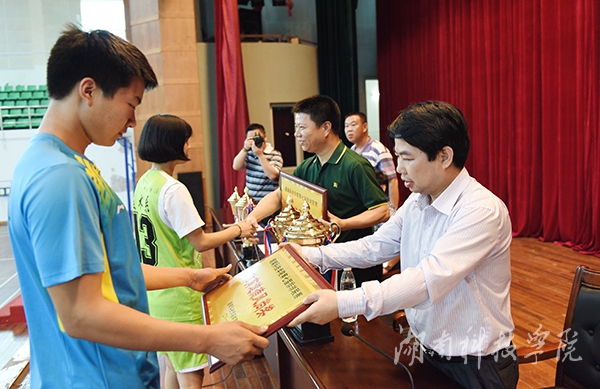 副校长李常健、程智开,教务处处长石循忠,学工部部长唐华山,体育学院党总支书记何智强,体育学院副院长刘根发、龙亚军为获奖单位和优秀运动员现场颁奖。