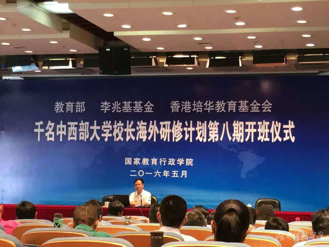 “千名中西部大学校长海外研修计划”由香港李兆基基金会和培华教育基金会共同出资与教育部合作开展,从2012年起至今,已资助千名中西部地方公办高校领导赴英美等国大学研修,陈弘是2014年赴英国研修团团员。每一届研修,国家教育行政学院都会邀请老学员回校交流,分享研修成果。