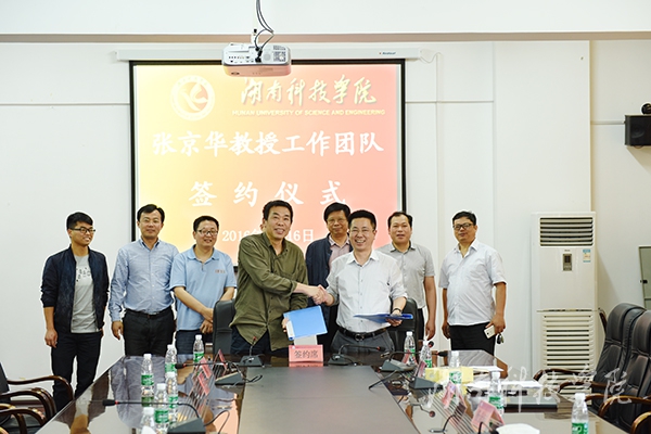 本网讯(记者 张云芳 摄影 何帅文)5月16日,学校在行政办公楼六楼会议室举行张京华教授工作团队签约仪式。校长曾宝成、副校长郑山明及人事处处长李勇、科技处处长杨金砖等部门领导出席仪式。随着校长曾宝成与张京华教授的亲切握手,标志着我校2016年引进高层次人才再获佳绩。