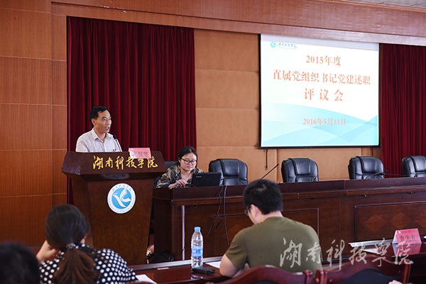 各直属党组织书记围绕落实履行党建工作第一责任人职责、“三严三实”专题教育、落实党建重点任务、思想理论建设、宣传思想工作、党风廉政建设、安全稳定工作、基层党组织建设经验和做法、党建工作存在的问题及整改情况、抓好党建工作的打算等方面进行现场述职,学校领导和相关部门负责人打分评议。