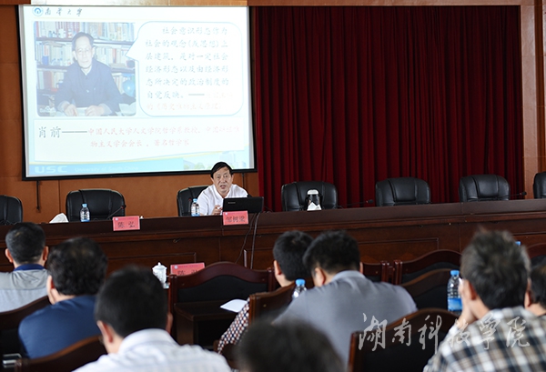 邹树梁从意识形态及其马克思主义意识形态概述、新形势下高校意识形态工作的极端重要性、坚持马克思主义意识形态在高校的主导地位三个方面进行了精彩讲授。