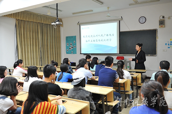 本网讯(通讯员 李莉婷 摄影 何帅文)4月27日晚,永州人民广播电台资深主播、编辑,湖南广播联盟永州之声宣传中心副主任,湖南广播联盟永州之声节目部主任海燕对话我校媒体人。她与我校新闻中心广播站、记者站、电视台、新媒体中心的同学畅聊媒体人的坚守与成长,并结合主播实践认真解答同学们抛出的问题。