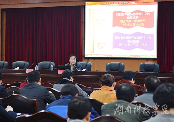本网讯(记者 邓肖华 摄影 何帅文) 4月9日上午,湖南省委讲师团主任郑昌华应邀来校为处干班学员授课。校长曾宝成主持。
