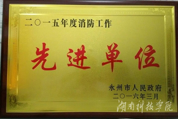 本网讯 (通讯员 郑欢)近日,永州市人民政府办公室下发《关于表彰2015年度消防工作先进单位和先进个人的通报》,我校获2015年消防工作先进单位。 我校十分重视消防安全工作,定期对学校各教学楼、宿舍的消防设施、设备、疏散通道、火灾隐患等进行检查;对全校的消防设备进行消防台账登记,做到及时发现问题,及时解决问题;定期邀请省消防协会的消防知识专家为全校师生进行安全知识培训;开展消防演练和应急疏散演习,不断增强师生的防范意识与防范技能。
