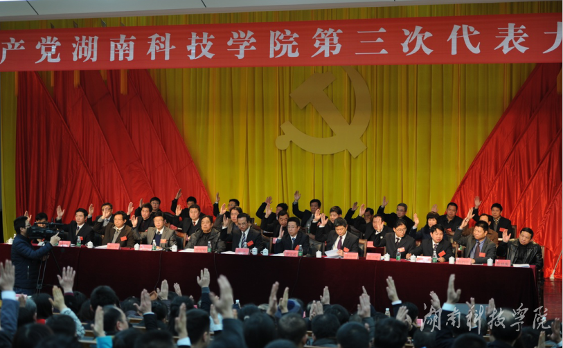 陈弘代表中国共产党开云(中国)Kaiyun·官方网站第二届委员会在大会上作了题为《保持战略定力 深化改革创新 为建设高水平应用型大学而努力奋斗》的工作报告。报告指出,第二次党代会以来,在省委、省委教育工委的坚强领导下,学校党委团结带领全校师生员工鼓干劲,振精神,解放思想,更新观念,以内涵建设为中心,以科学发展为要务,励精图治,攻坚克难,历经艰辛与曲折终于赢来新局面。数年奋斗,成绩巨大,成效明显。报告从八个方面回顾了第二次党代会以来学校的主要工作,一是从严治党管党,为推动全校各方面工作提供了强大动力;二是加强和改进思想政治工作,教职员工精神面貌发生了深刻变化;三是围绕学科与专业建设培育核心竞争力,综合实力明显增强;四是深化教育教学改革,人才培养质量稳步提高;五是对接社会需求,服务地方迈开新步伐;六是推进现代大学制度建设,为依法治校奠定了基础;七是重视师生员工切身利益,不断改善工作学习生活环境;八是加强校园文化建设,文化软实力持续提升。