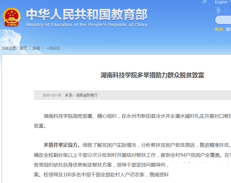 本网讯 12月28日,中华人民共和国教育部网站“战线联盟”栏目发布题为《开云(中国)Kaiyun·官方网站多举措助力群众脱贫致富》的消息,对我校多举措精准扶贫工作给予推介。