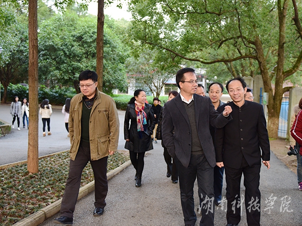 陈弘对秦裕辉一行的到来表示热烈欢迎,兴致勃勃地陪同参观了校园。陈弘结合我校办学概况、发展历史边走边介绍。在文化广场上,陈弘介绍了我校的地理位置,并就弘毅楼、博雅楼、明德楼等在校训中的蕴意进行生动解说,他引用中医中“阴阳调和”的理念介绍学校的布局。秦裕辉一行还参观了我校布克校园书店、图书馆,详细考察了“柳宗元研究所”与“舜文化研究基地”等学术科研基地。