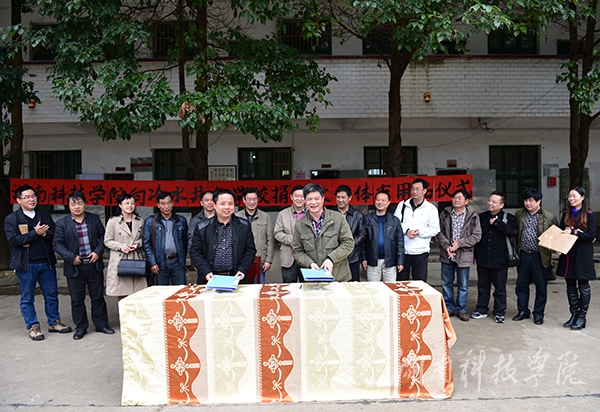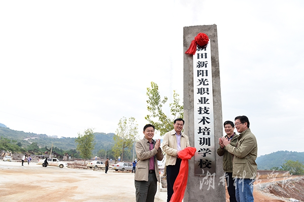 本网11月3日讯 今日上午,校党委副书记唐艳明、副校长宋宏福一行率我校10余名中层干部赴新田县冷水井乡潮水铺村深入开展“一进二访”活动,为扶贫点送去捐赠物资,并为建于潮水铺村的扶贫经济实体——新阳光职业技术培训学校揭牌。新田县县委副书记唐富荣,县委常委、纪委书记聂朝飞一行陪同。