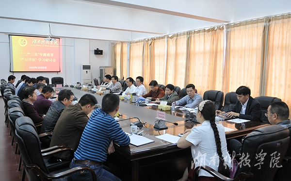 本网讯(记者 王翩翩 )10月9日下午,我校在行政办公楼六楼会议室举行“三严三实”专题教育“严以用权”专题研讨会。会议由校党委书记陈弘主持,校长曾宝成及其他校领导出席并围绕主题发言。