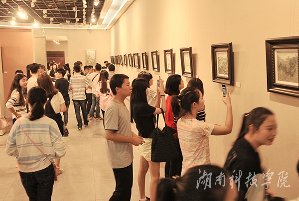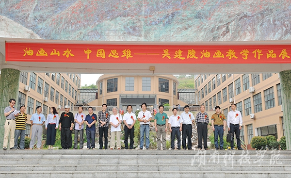 校党委书记陈弘亲临作品展,他说,大学教育文化丰富、气象万千,大学教育的目的在于培养“和谐的人”,在人格养成过程中,美育是根本。“我们学校经常有这样的文化活动,经常有像吴建陵教授这样的老师,在教学上辛勤耕耘,不断创新,‘地因人始终,校因特而名’,他希望学校的美育工作做得更好。