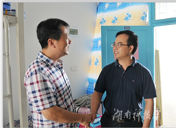本网讯(记者 李好 摄影 何帅文)9月12日至13日是我校2015级新生报到的日子,校党委书记陈弘十分牵挂新生。他一回到学校就深入宿舍、食堂了解新生生活,关心看望新同学。