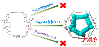 最近,团队成员通过延长侧链长度的策略,合成了巨大空腔尺寸的萘酰亚胺拓展柱[6]芳烃。研究发现该合成大环的空腔宽为18.769 Å,高为17.109 Å,可以选择性识别塔[5]芳烃,并在电子激发和电荷的流动领域具有潜在的应用。该研究获得了国家自然科学基金、湖南省自然科学基金,湖南省化学工程与技术应用特色学科等经费支持。