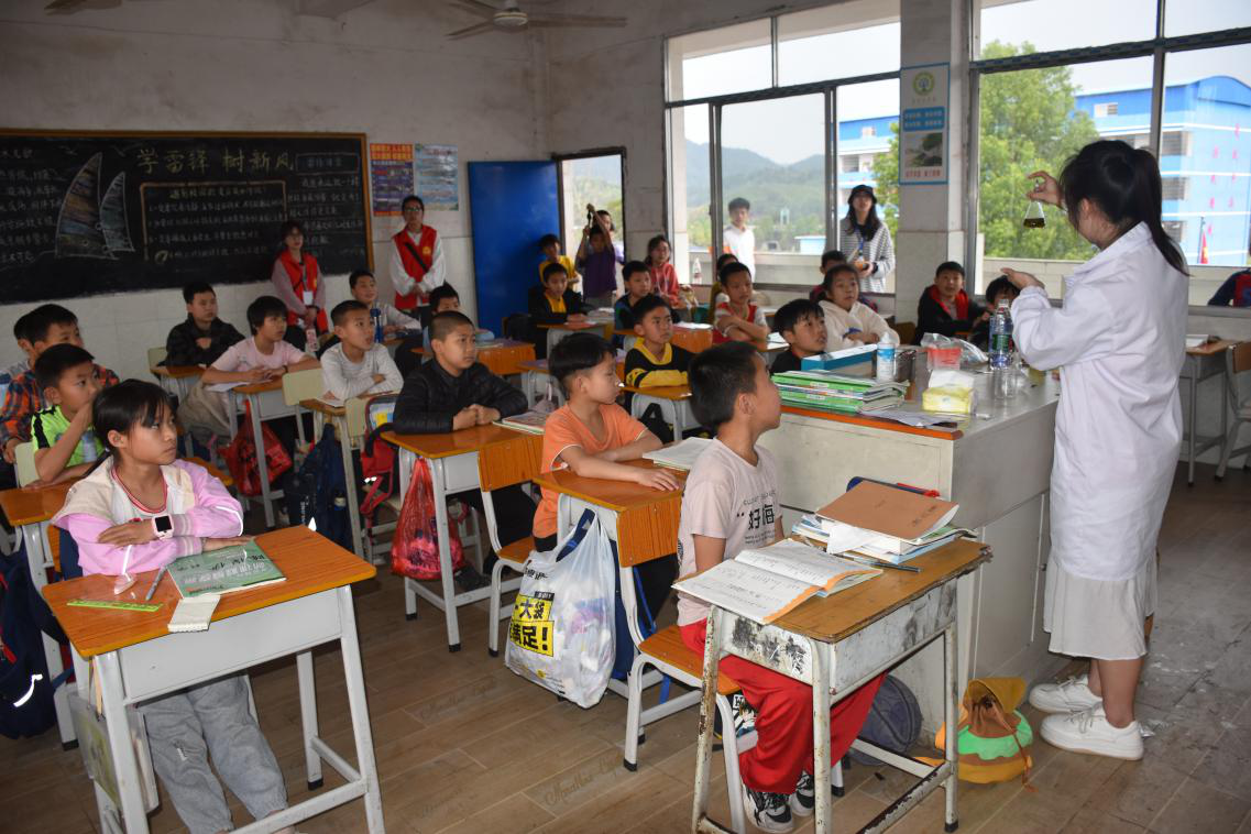 智慧树小学位于距开云(中国)Kaiyun·官方网站近40公里的珠山镇,这里地处偏僻,教室和田径场就是小朋友们每天的活动范围。当身穿红色志愿服的哥哥姐姐们走进学校,孩子们的眼里充满了好奇和兴奋。一声声“哥哥、姐姐好”表达了他们对哥哥姐姐的热烈欢迎。活动过程中,志愿者们通过自制PPT耐心地为小朋友们传授种植知识,小朋友们坐得端正笔直,认真听讲,每问及一个问题,孩子们都踊跃举手发言,课堂氛围十分融洽。同时,志愿者们结合学院专业特色,在小学课堂上安排科普实验,增进了孩子们对科学知识的认知。