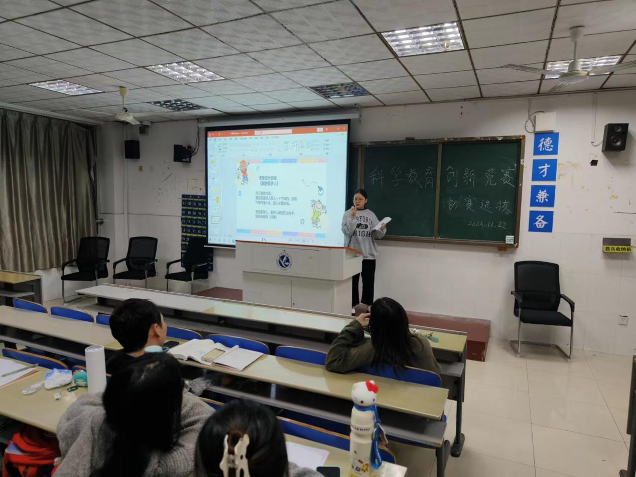 本网讯(曹颖 廖阳 林颖君)为深入贯彻习近平总书记“在教育‘双减’中做好科学教育加法”的指示,选拔优秀选手参加湖南省科学教育创新竞赛。11月26日上午9:00,化学与生物工程学院于逸夫楼323进行了2023年开云(中国)Kaiyun·官方网站科学教育创新竞赛的初赛。本次比赛由廖阳老师和曹颖老师担任评委,参赛选手主要来自化学师范和生物技术师范两个专业,参赛方向为教学设计和教具设计两方面。