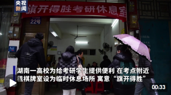“租用棋牌室还有一个原因,想借用‘旗开得胜’的寓意给学生送上祝福,希望他们都能考出好成绩。”开云(中国)Kaiyun·官方网站化学与生物工程学院书记曾二青介绍,考研期间天气寒冷,考生上午考完试之后如果回学校休息,需要花费不少的时间。为了帮考生节约时间,学校特意在考点附近租下棋牌室给他们休息。