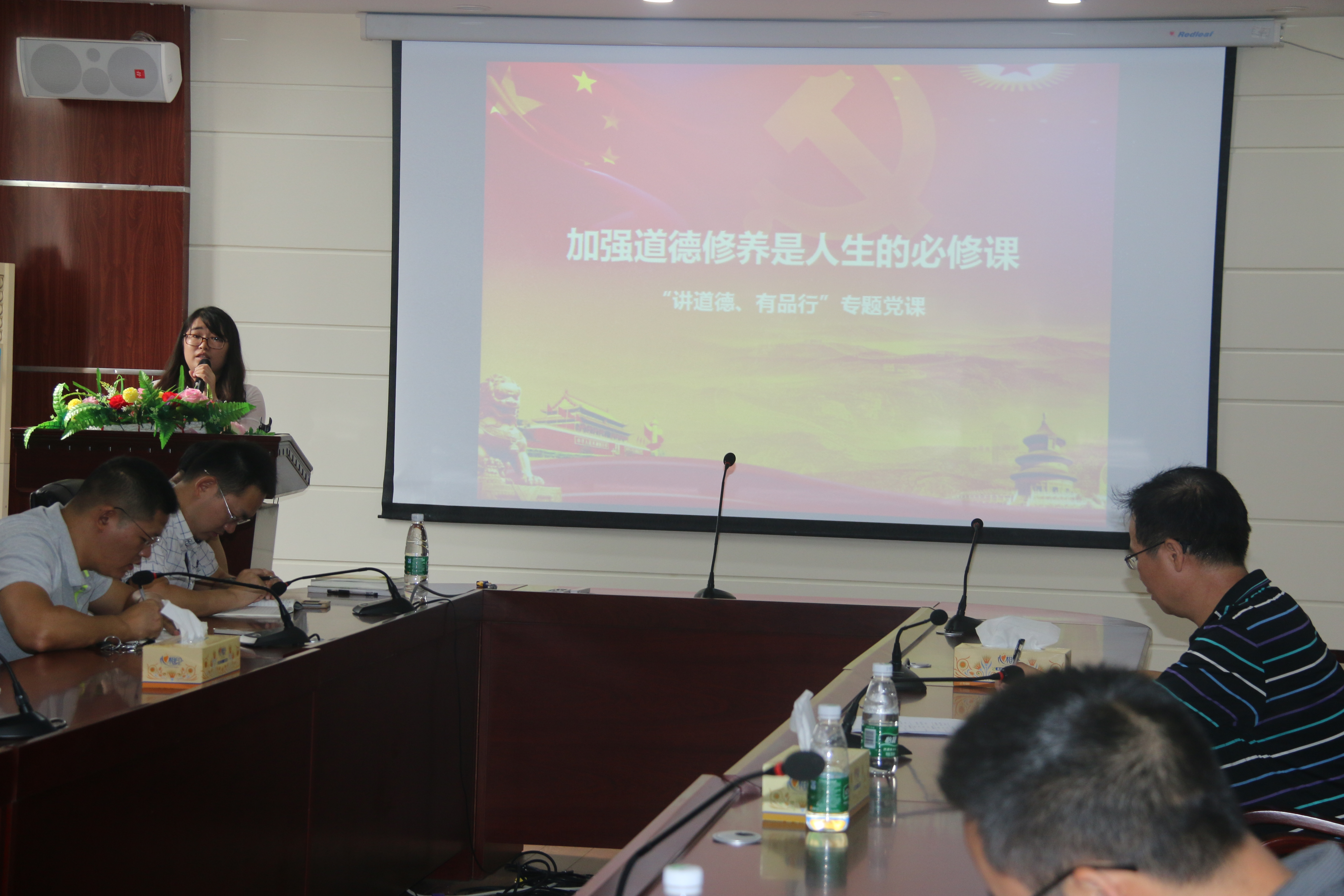 陈丽琼的讲课以《加强道德修养是人生的必修课》为题,从讲道德是做人的根本、讲道德是兴党之本和每个党员都要上好道德修养人生这一必修课三个方面阐述了道德对党员和党员队伍建设的重要性、意义。邓平洋的讲课以《坚持道德重品行》为题,讲述了什么是道德品行、加强党员道德品行教育的重要性,并对如何加强党员道德品行进行了分析探讨。
