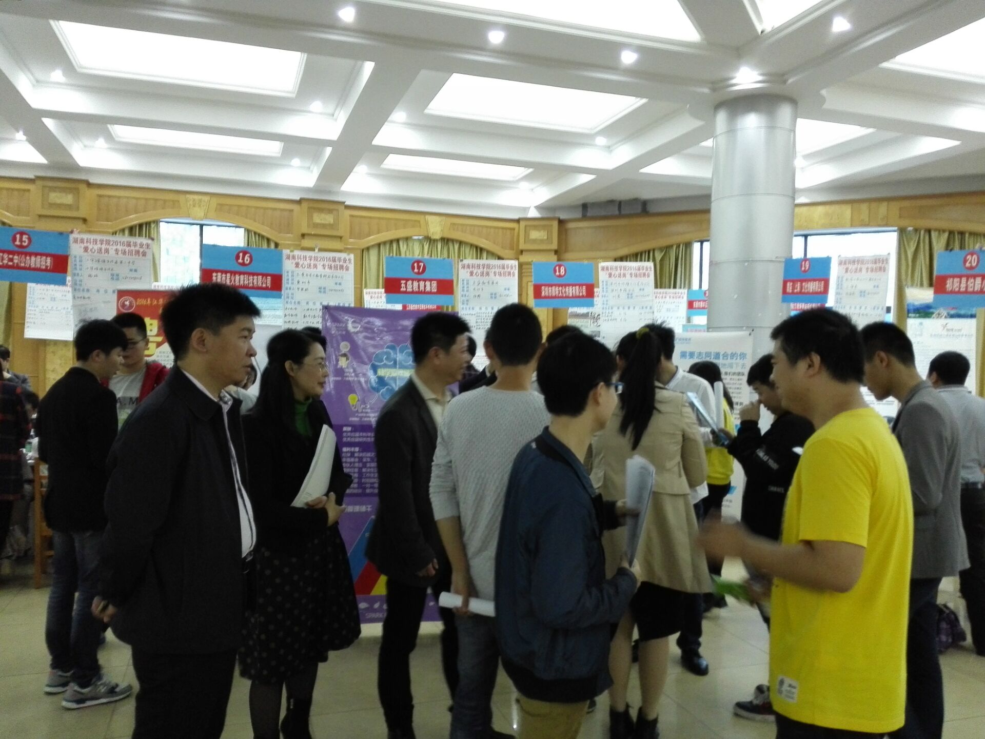 本网讯(夏慧聪)帮助学生就业,我校就业创业指导中心携化学与生物工程工程学院于4月24日在明德楼二楼多功能厅举办“爱心送岗”专场招聘会。程智开副校长、就业指导中心郑银芳、谷利民以及化生学院党总支赵雨云书记出席此次招聘会。