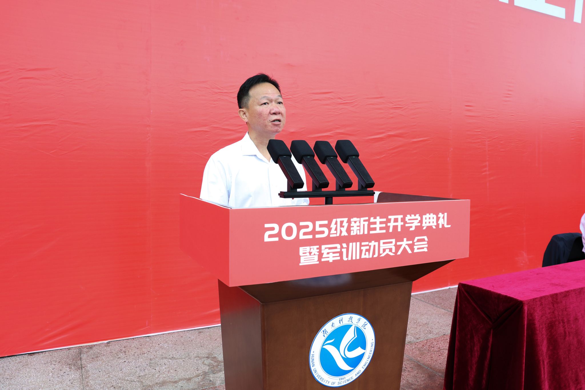 本网讯(记者 彭尧煜)西山叠翠迎新生,潇水欢歌启新程。9月22日上午,学校在田径场举行2025级新生开学典礼。校党委书记李钢,党委副书记、校长黄创霞,校领导李常健、何福林、陈灿军、郑银芳、何海,党委委员、组织部部长杨涛出席典礼。典礼由杨涛主持。