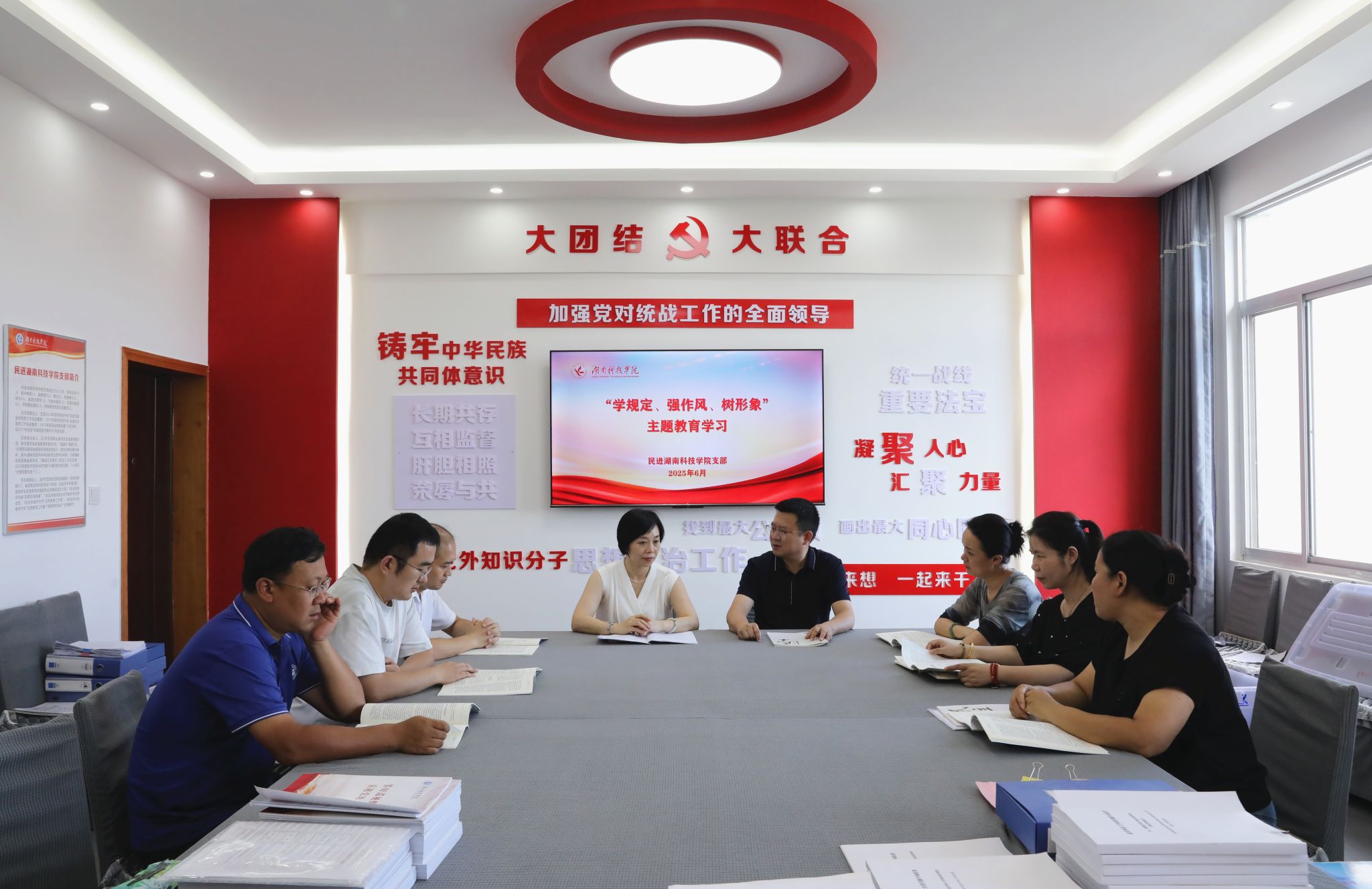 本网讯(通讯员 李小雨 李焕品)6月27日,民进开云(中国)Kaiyun·官方网站支部召开“学规定、强作风、树形象”主题教育学习会,深入学习贯彻中共中央八项规定精神,全面加强纪律作风建设。支部主委何丽萍主持会议并讲话。