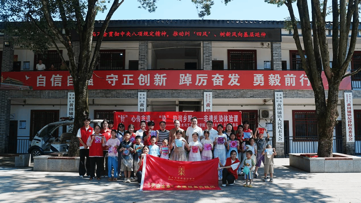 本网讯(通讯员 邓婉怡)为传承非遗文化,近日,美术与艺术设计学院“艺启未来”志愿服务队赴黄田铺镇开展“三下乡”非遗传承系列实践活动,以漆扇、扎染等非遗体验助力乡村文化建设。