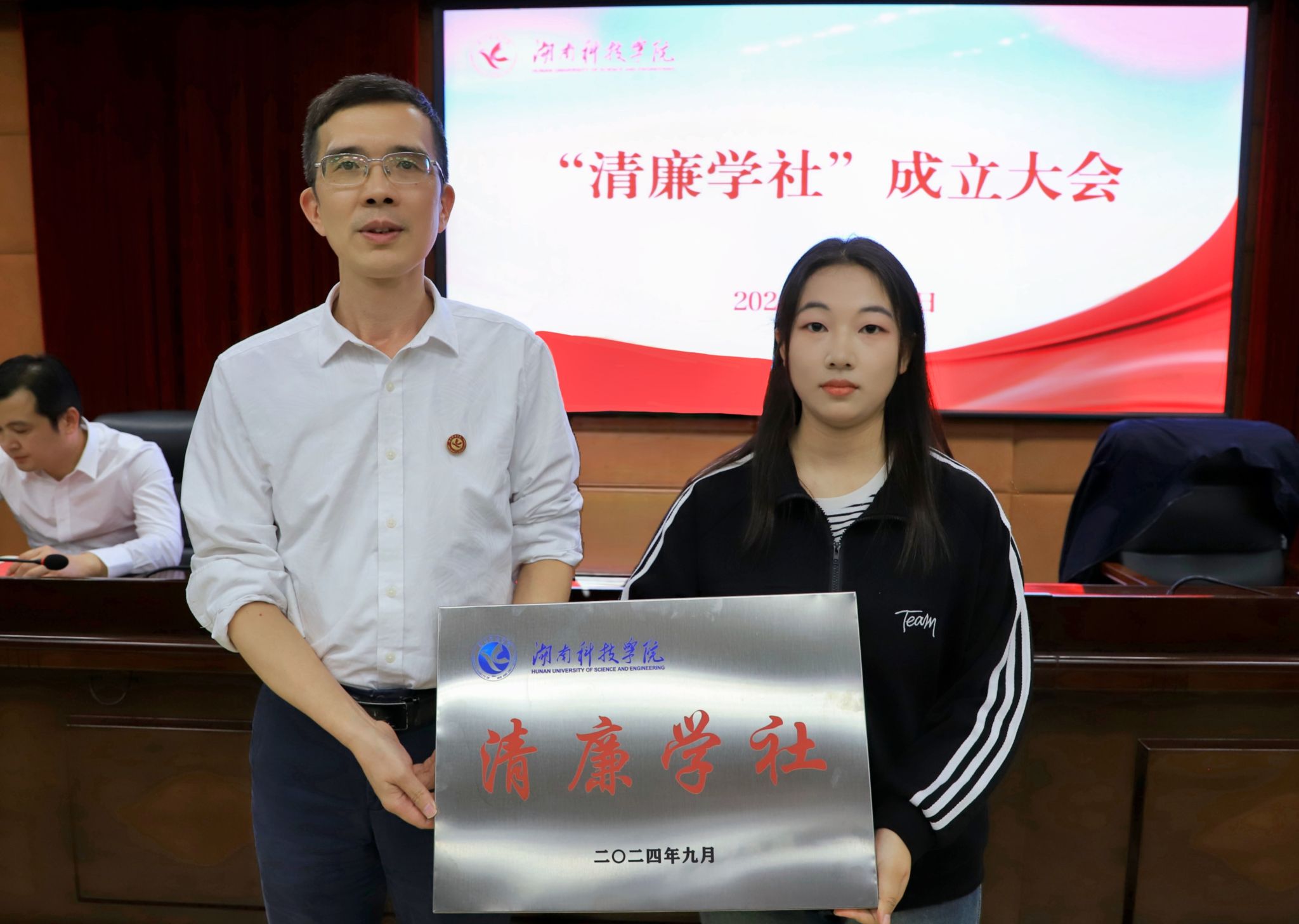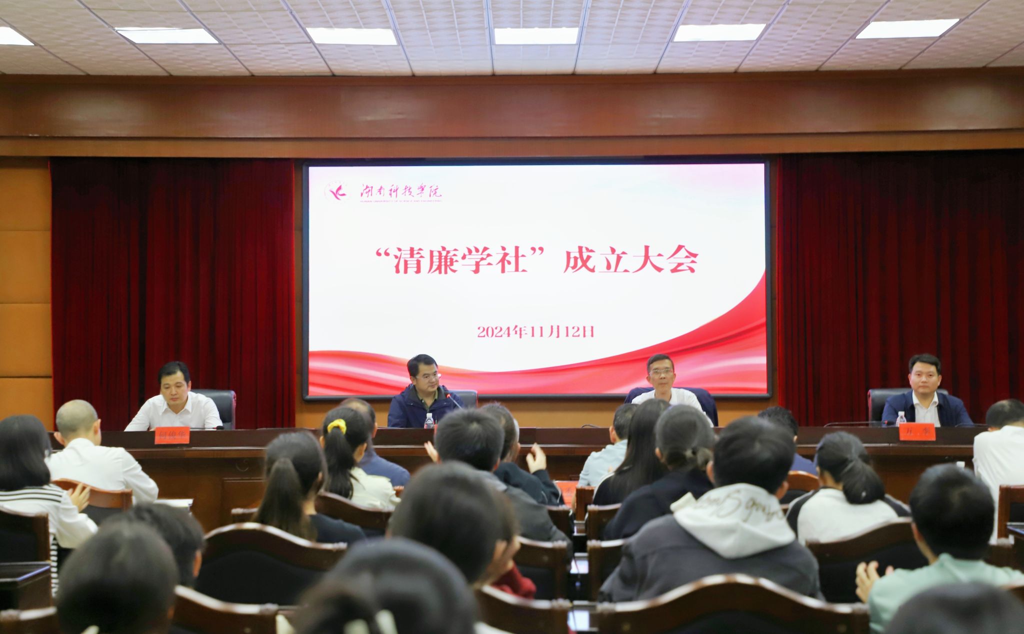 本网讯(通讯员 李井波)为深入推进清廉科院建设,着力打造廉洁文化品牌,11月12日,我校举行清廉学社成立大会。校党委委员、纪委书记陈灿军出席会议,纪委副书记、纪检监察处处长郑向晖,校团委书记万李、纪检监察处副处长何俊华及各直属党组织纪检委员,社团指导老师、学生干部以及会员代表参加会议。