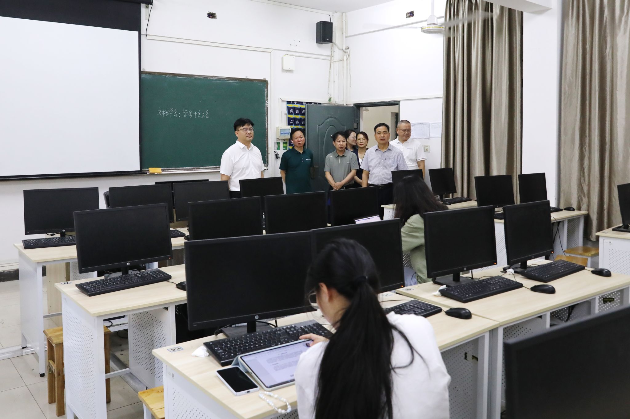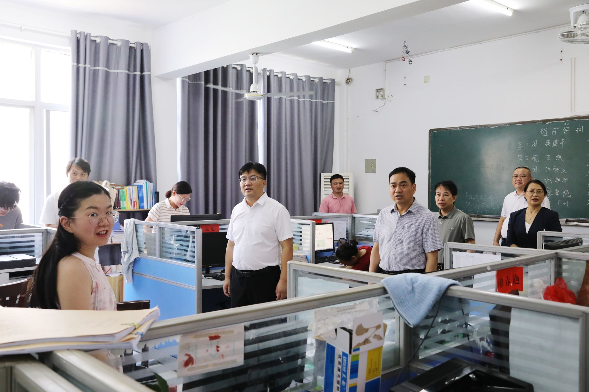 在马克思主义学院和理学院,李钢与黄创霞走进办公室和教室,与正在紧张阅卷、全力备战教学比武和学科竞赛的师生亲切交流。校领导们叮嘱师生们,当前正值高温酷暑,一定要做好防暑降温工作,合理安排工作学习时间,做到劳逸结合。“希望大家坚定信心、全力以赴,在赛场上充分展现学校师生的精神风貌,赛出风格、赛出成绩!”。同时,校领导要求学院及相关职能部门,要切实强化服务意识,从细节入手,为师生备赛提供全方位、高质量的支持保障,助力师生在比武竞赛中取得佳绩。