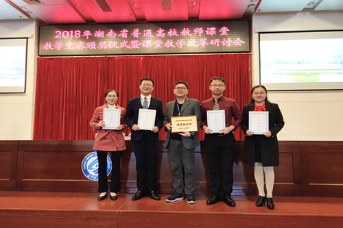 10月27日至28日,湖南省高校教师课堂教学竞赛在长沙理工大学落下帷幕。我校推荐的5位参赛教师中4位进入现场决赛,其中理学院廖春艳(理科组)、传媒学院李超(文科组)、土木与环境工程学院罗雄文(工科组)和电子与信息工程学院段华斌(工科组)四位教师喜获一等奖,且同时荣获湖南省教育工会颁发的“湖南省普通高校教学能手”荣誉称号。我校获一等奖数量与湖南师范大学、湖南大学并列第一,获得优秀组织奖,为历年来在该赛事上成绩最好的一次。