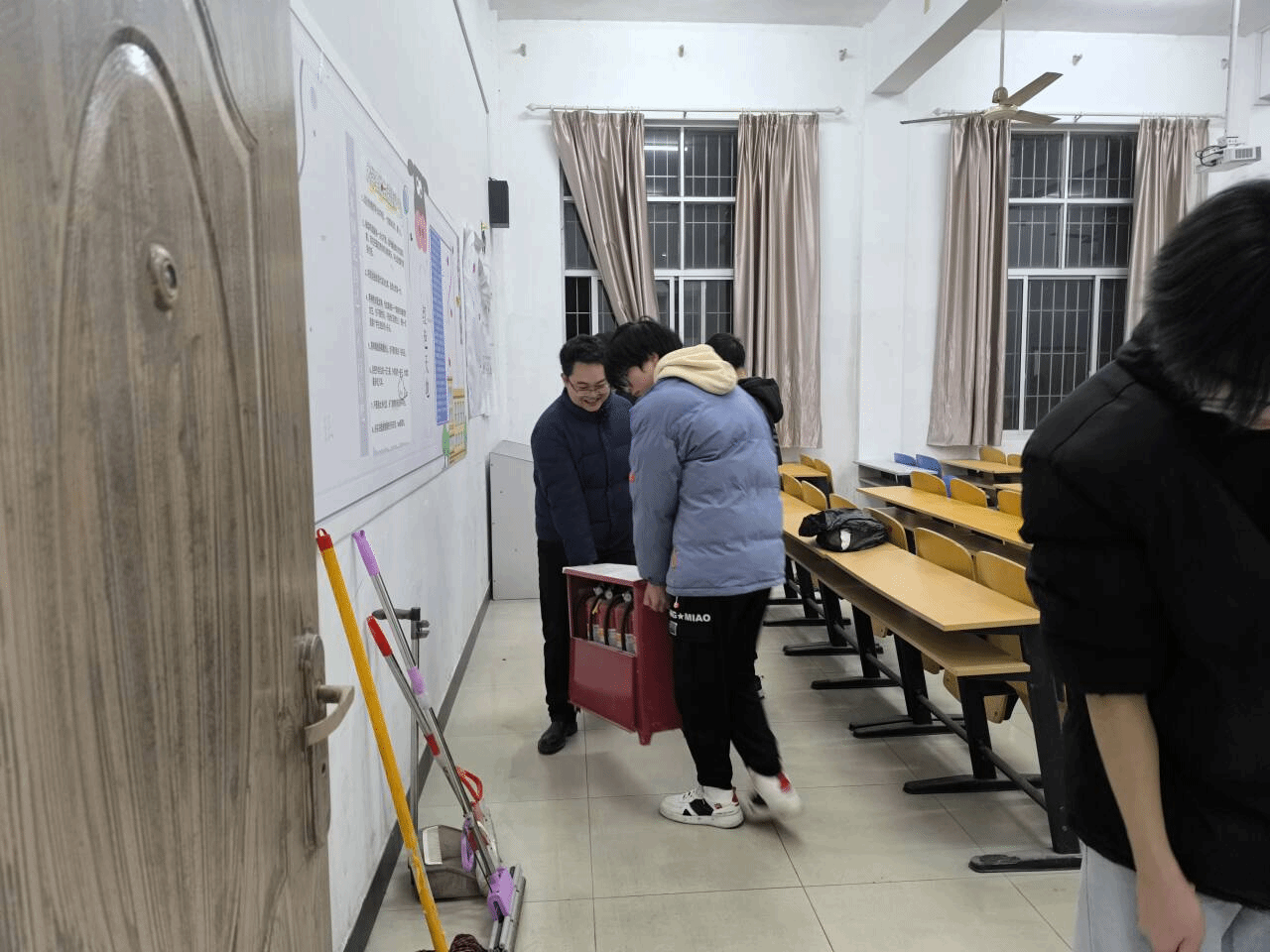 情系学生,传递温暖。2月26日晚,理学院院长李小武、党总支书记带领学院领导班子、辅导员、班主任深入学生宿舍,关心学生新学期适应情况,贴心又暖心。服务师生,开学启航。2月26日晚,在校学生、老师们忙得热火朝天,将明理楼教室及公共区域打扫一新,为第一天上课打造舒适整洁的学习环境。居安思危,安全第一。为进一步做好校园安全宣传教育工作,增强师生安全意识,理学院将于近期在各班开展“开学第一时间讲安全”主题班会。