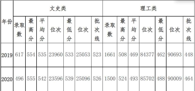 (6)师范类:一志愿最低投档分为616分,招生专业:汉语言文学(师范)专业(计划30人),英语(师范)专业(计划25人);