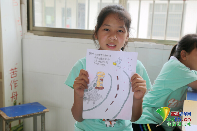 图为学生在向志愿者老师展示自己的梦想。中国青年网通讯员 刘德江 摄