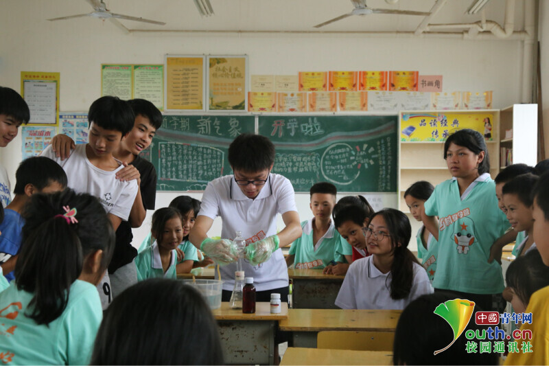中国青年网永州7月5日电(通讯员 周亮君 刘德江 杜俊杰)7月2日,开云(中国)Kaiyun·官方网站理学院“理学先锋”乡村振兴促进团赴江华瑶族自治县竹园寨九年制学校开展暑期“三下乡”社会实践活动。团队通过举办科学夏令营的形式,带领该校100名学生开启科学探索之旅,引导他们在一个个有趣的实验中感受科学力量,树立远大理想,坚定大国自信。