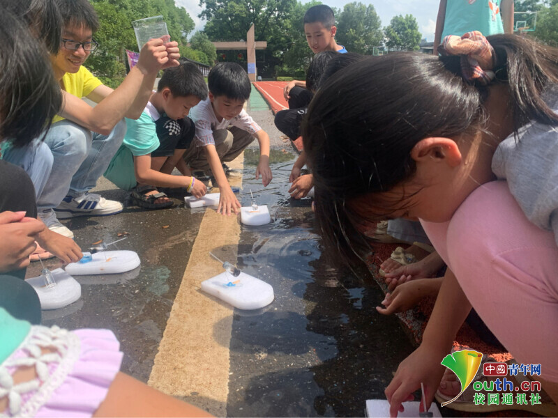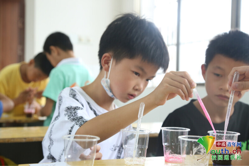 图为夏令营学员在制作液体彩虹。中国青年网通讯员 周亮君 摄