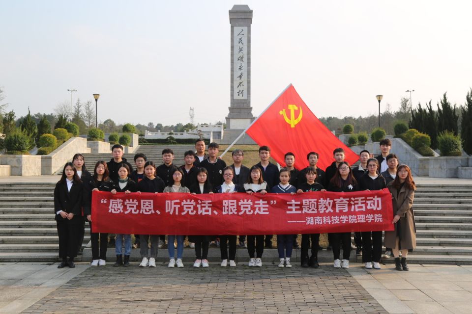 下午四时,一行人来到永州市烈士纪念园。在人民英雄纪念碑下,宣誓仪式准备就绪。首先,欧阳素勤副书记致辞,她号召大家学习英烈精神、继承英烈遗志,传承红色基因、弘扬革命传统,把“热爱祖国、忠于人民、无私奉献、敢于牺牲”的烈士精神,融入灵魂血脉,并终身牢记自己在党旗下所立下的誓言,不断提高对党的事业的责任感、使命感。接着,预备党员代表胡雯作了党旗下的讲话,并带领全体预备党员庄严宣誓。在自由发言环节,理学院学生第三党支部预备党员陈鑫虎谈到:“作为一名预备党员,我们一定要发扬党的优良传统,学习老一辈的革命作风,将革命先烈的大无畏精神深深地镌刻在自己心中。”最后,唐卫华书记对大家提出三点要求:一要传承优良传统,担当时代大任;二要恪守入党誓言, 践行庄严承诺;三要夯实政治根基,加强党性修养。