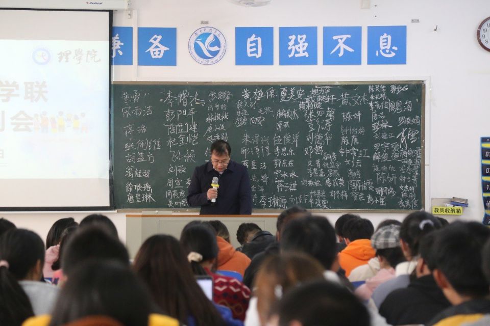 本网讯(通讯员 钟子菁)10月18日学院召开团学联干部换届后第一次例会,参加本次会议的有党总支副书记黎建军、团总支书记杜俊杰、各年级辅导员,以及团学联全体学生干部共百余人。