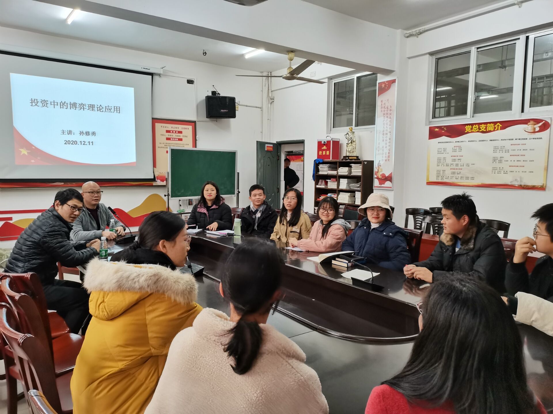本网讯(通讯员 罗晓婧)理学院12月11日在明理楼举办了主题为“博弈论与投资”的讲座。主讲人孙修勇2014年毕业于上海财经大学金融数学与金融工程专业,获应用经济学博士学位;2019年7月从复旦大学应用经济学博士后流动站出站。现供职于广西桂林银行,主要负责债券投资相关研究与管理。讲座由理学院副院长吴清华主持。