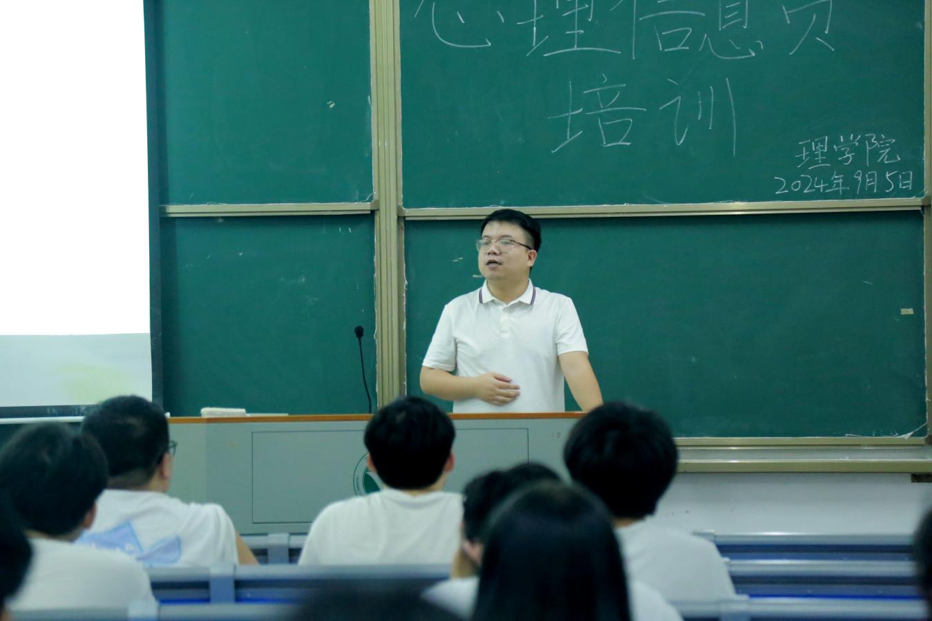 本网讯(通讯员:刘浩 赵江南)为落实开学初心理健康工作各项部署,发挥心理信息员队伍的关键作用,理学院于9月5日晚在明理楼504召开2024年下期第一次心理信息员培训。理学院党总支副书记欧阳素勤、院学生会主席赵沂同学和理学院全体心理信息员参加,由心理专干赵江南老师主持。