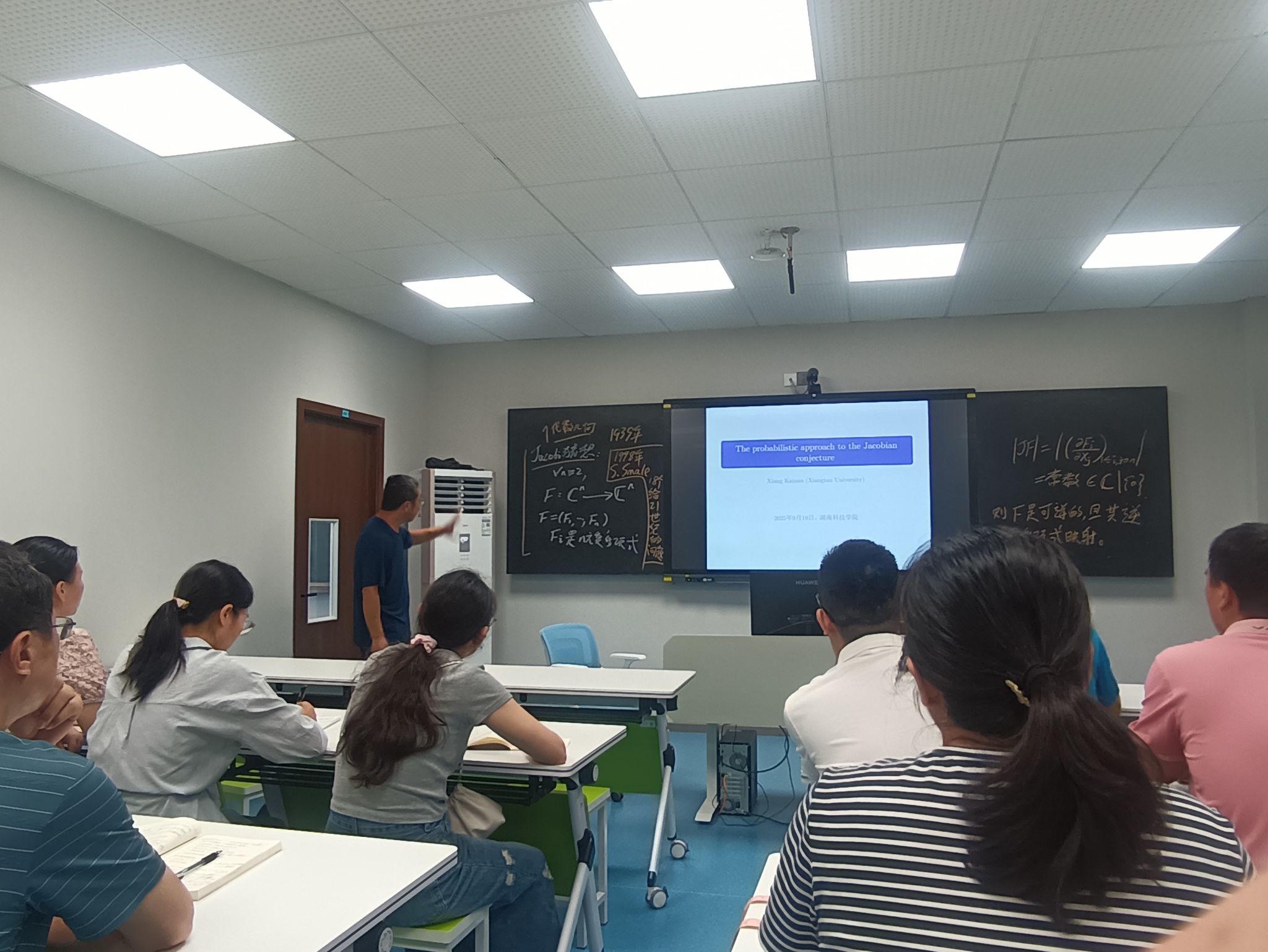 本网讯(通讯员 臧乃策)9月19日下午,开云(中国)Kaiyun·官方网站明理楼402教室座无虚席,一场聚焦数学界著名难题“雅可比猜想”的学术盛宴在此拉开帷幕。湘潭大学向开南教授做客“明理讲坛”,以The probabilistic approach to the Jacobian conjecture为题,为师生们带来了一场关于雅可比猜想概率方法的精彩学术报告。