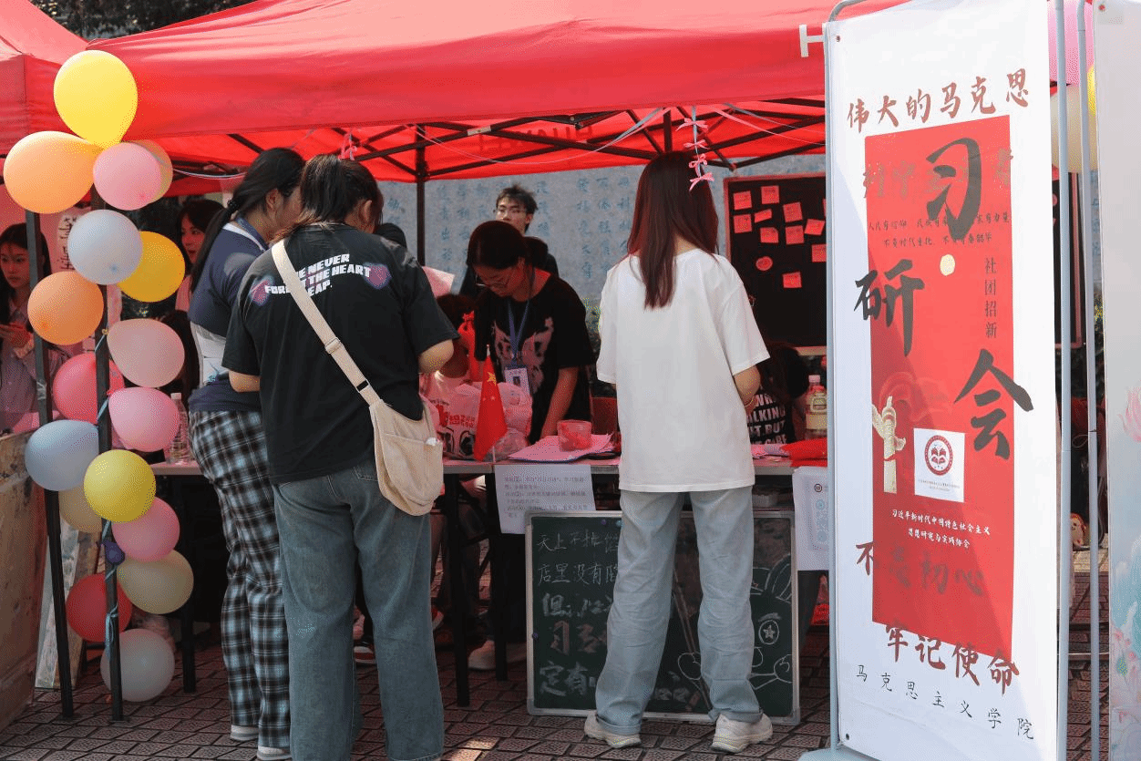 本网讯(记者 刘获逞)为激发马克思主义学院社团活力,为社团注入新鲜血液。10月13日,我院习近平新时代中国特色社会主义思想研究与实践协会于文化广场开展社团招新活动。
