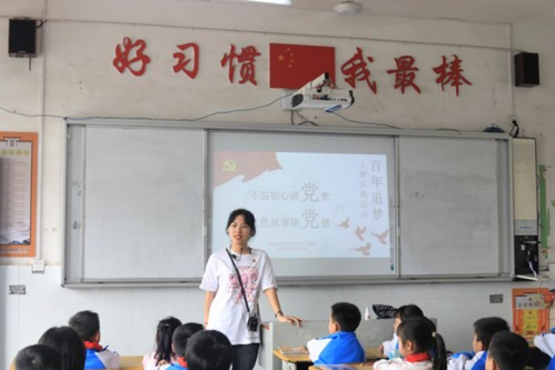 贴近专业学习。马克思主义学院组织开展了百年筑梦中山路义教活动,坚持到零陵中山路小学进行义教,每周三去给小学生们上一次“微党课”。马院学子发挥自身专业优势,积极承担党史知识宣讲责任,在育人最前线,以高校学生讲述党史小故事的形式,帮助小朋友们了解我们伟大的党的百年奋斗史,也使马院学子深刻领悟到作为新青年的责任与义务——让红色基因和革命薪火在新一代少先队员的身上得到传承。
