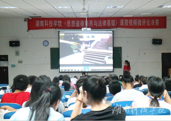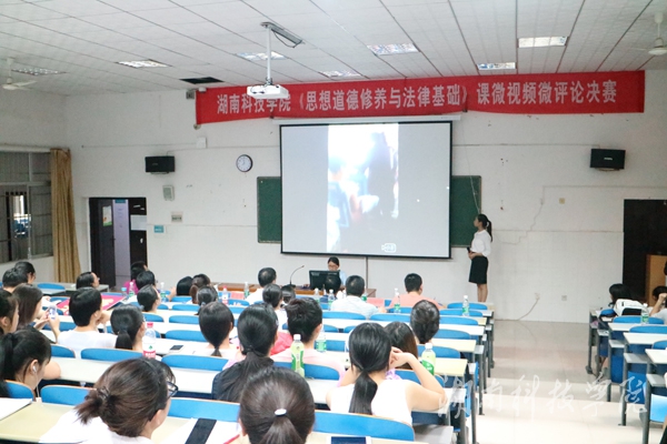本网讯(通讯员全伟裴滢)6月22日晚,马克思主义学院在逸夫楼201教室举办《思想道德修养与法律基础》课微视频微评论评比决赛,来自人文与社会科学学院、经济与管理学院等近200名同学前来观看学习。