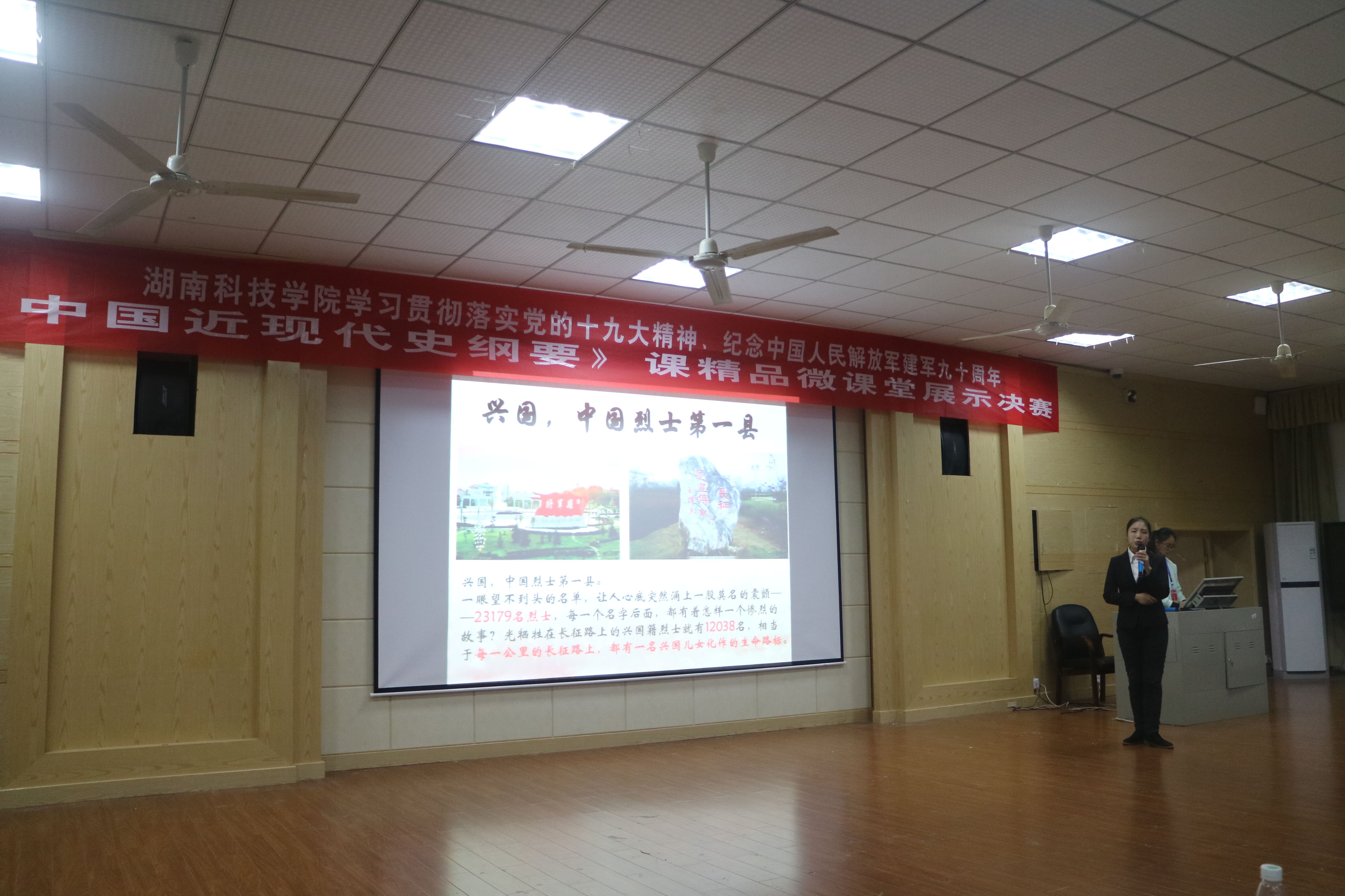 本网讯 (通讯员杨雯 康乃欣) 为进一步深入学习贯彻落实党的十九大精神,纪念中国人民解放军建军90周年,12月12日晚,马克思主义学院在致远楼701举行《中国近现代史纲要》课精品微课堂展示决赛,来自全校各个学院的同学们化身“小老师”,以别开生面的思政微课的形式生动的讲述了难忘的历史片段、历史人物。