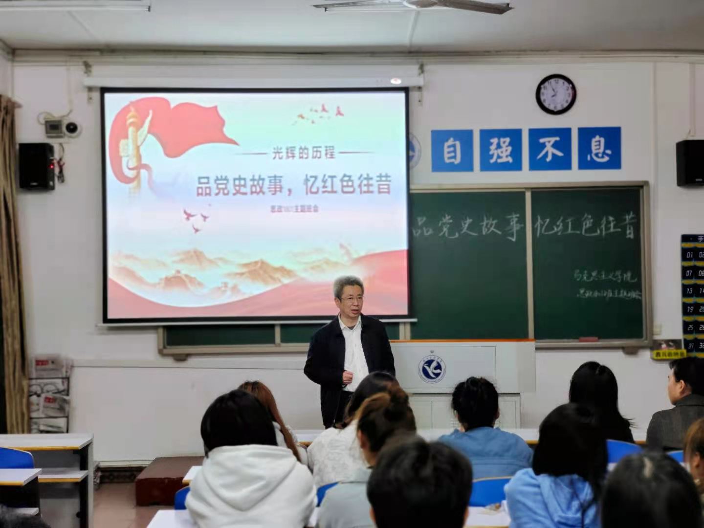 本网讯(记者 张成源)4月8日晚,马克思主义学院思政1801班在鹤鸣楼406召开“品党史故事,忆红色往昔”主题班会。校党委书记曾宝成以第二班主任身份受邀参加,马克思主义学院院长廖雅琴、党总支副书记兼副院长高丹与会。