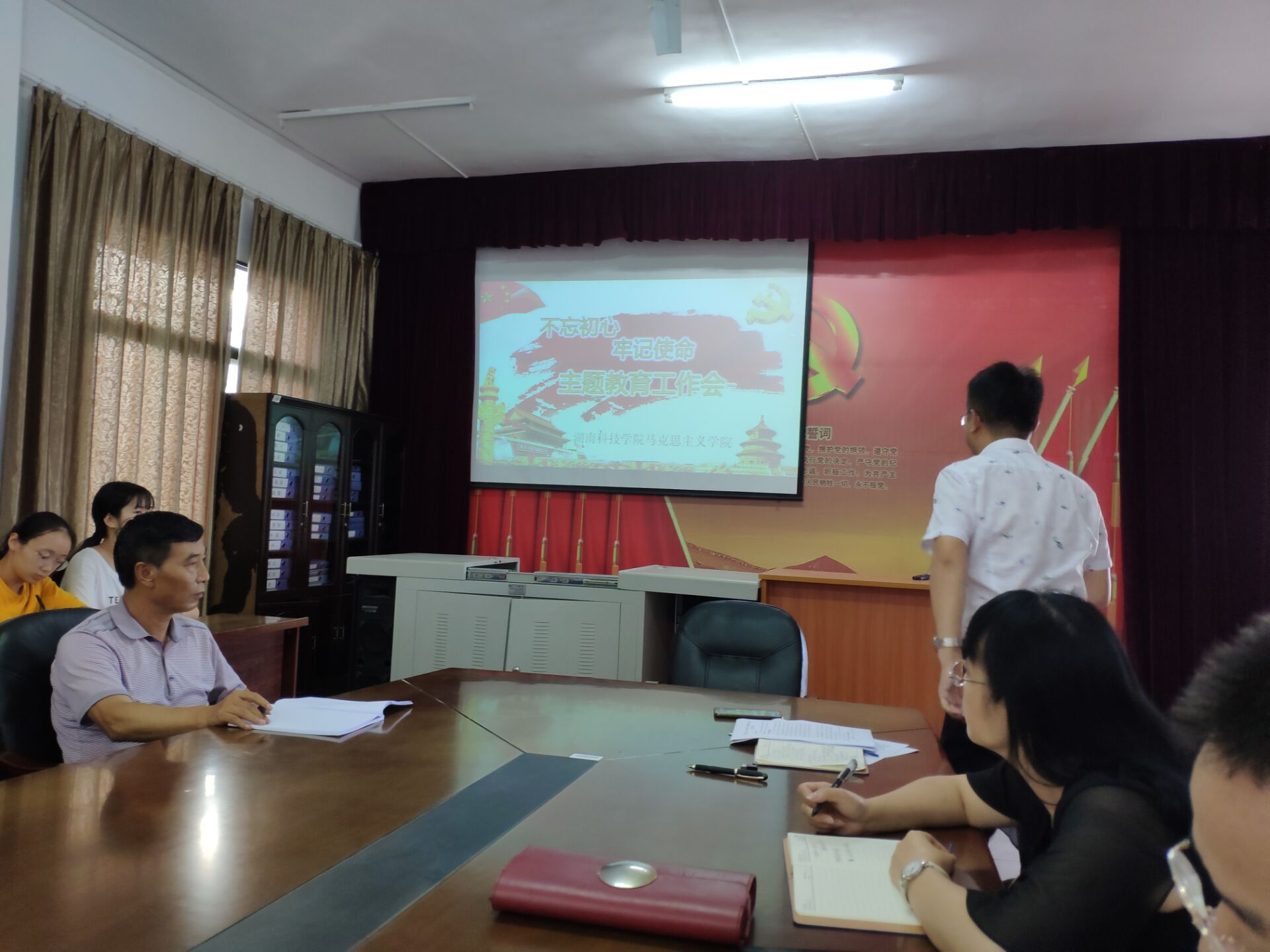 本网讯(通讯员李艳)9月12日下午,我院在鹤鸣楼405召开“不忘初心牢记使命”主题教育启动仪式暨工作部署安排会议,全体师生党员与会,会议由党总支书记郑向晖主持。