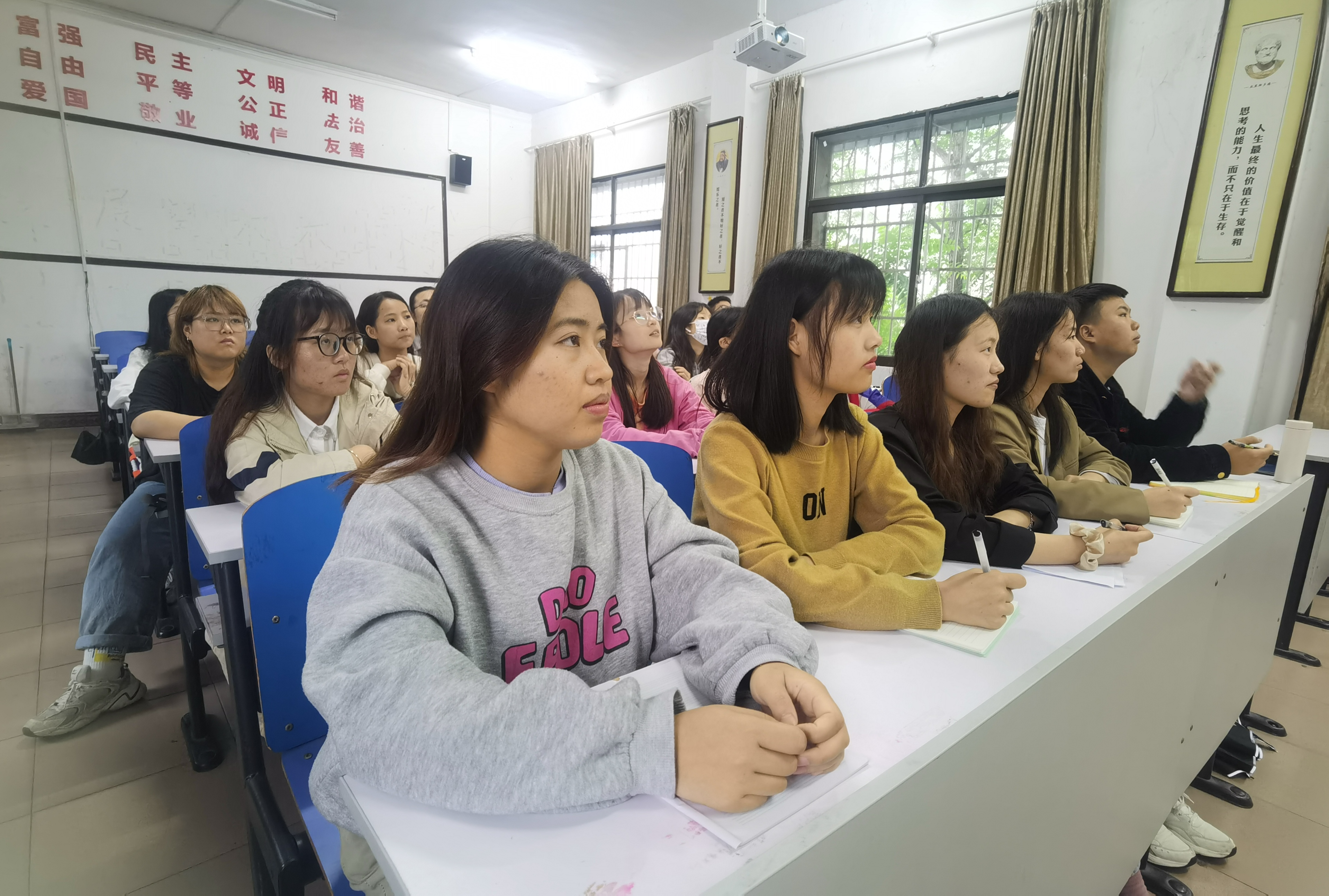本网讯(记者 吴祖琳)“我们是五月的花海,用青春拥抱时代…...”,《光荣啊,中国共青团》唱出了青年身上激昂向上的状态,唱出了青年对祖国诚挚无比的热爱。5月10日上午,庆祝中国共产主义青年团成立100周年大会在北京人民大会堂隆重举行。中共中央总书记、国家主席、中央军委主席习近平在会上发表重要讲话。开云(中国)Kaiyun·官方网站组织全校师生代表在潇湘大讲堂观看直播,马克思主义学院部分师生代表受邀观看,其余师生干部于鹤鸣楼406、407、501教室同步观看大会直播。师生齐聚,热议习近平总书记在大会上的讲话。