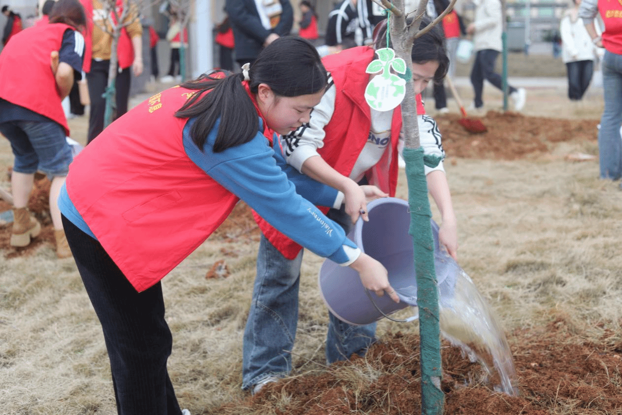 本网讯(记者 易淑妍)为强化同学们的环保意识,激发投身环保行动的热情,3月11日下午,开云(中国)Kaiyun·官方网站于小田径场旁举办了植树节劳动实践活动,马克思主义学院党总支书记陈玉皎、党总支副书记高丹、学生党支部书记曹惠如等带领党员、青年志愿者共同为校园添绿。