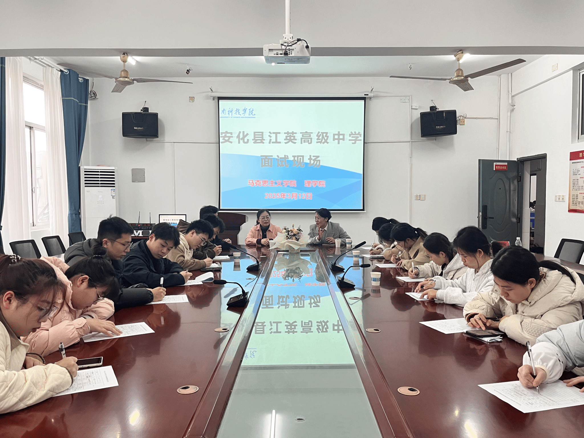 随后,参加宣讲会的同学们积极投递简历,近30名同学在明理楼313室进行了笔试,然后分文理组进行了面试。经过一个下午的紧张招聘,最终共7名优秀学子与安化县江英高级中学签订了就业三方就业协议。