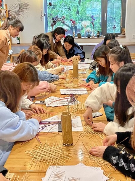 谢筱冬教授与企业家Ailyna共同为学生们讲解永州的竹文化及衍生品