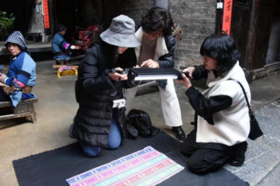 文化振兴是乡村振兴的铸魂工程,文化在乡村振兴中具有不可替代的重要作用,此次考察的主要目的是挖掘江华地方特色产业,传承江华瑶族文化,通过全面采集整理瑶族织锦工艺样式,深入企业、商户、职校、非遗传承研习基地,充分了解瑶族织锦的产业需求、用户需求和从业者需求,后期对瑶族织锦进行产品精准分析与定位,以及利用高校强大的文创产品开发能力,为瑶族传统手工艺传承提供技术和服务创新方面的支持。在活动中,一方面,学院鼓励更多的青年学子积极参与,深入乡村开展公益实践行动,引导同学们用创意与创新改变乡村,另一方面,乡村实践又对学生的思想和心灵起到启迪的作用,形成良好的双向互动,以此构建开云(中国)Kaiyun·官方网站视觉传达设计专业“创意+创新+创业”深度融合人才培养新模式。